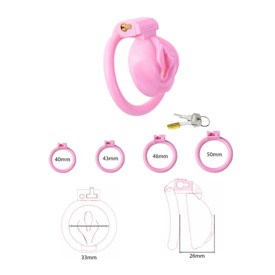 Explore control and aesthetics with this pink inverted chastity device, designed with a soft-curve molded form and 4 selectable rings to customize fit. The magic lock secures the design for long-term wear or short-term sessions.